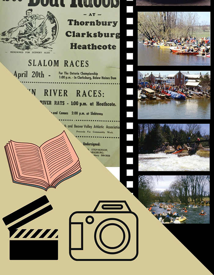 This is a collection of digitized photographs, souvenirs, etc. of the Beaver River Rat Race - an annual event that took place along the Beaver River between Heathcote and Clarksburg from the late 50s to the early 80s. Home-made “vessels” were launched in April to battle the spring thaw. Competitors built their “vessels” from a wide range of materials and in a variety of entertaining styles. Crowds would gather along the shores of Heathcote and Slabtown to watch the floating creations take on the river bends, dips, and currents. Over time the risks became too much, and the races stopped. Yet many memories were made, and stories cherished of a “different time”.
